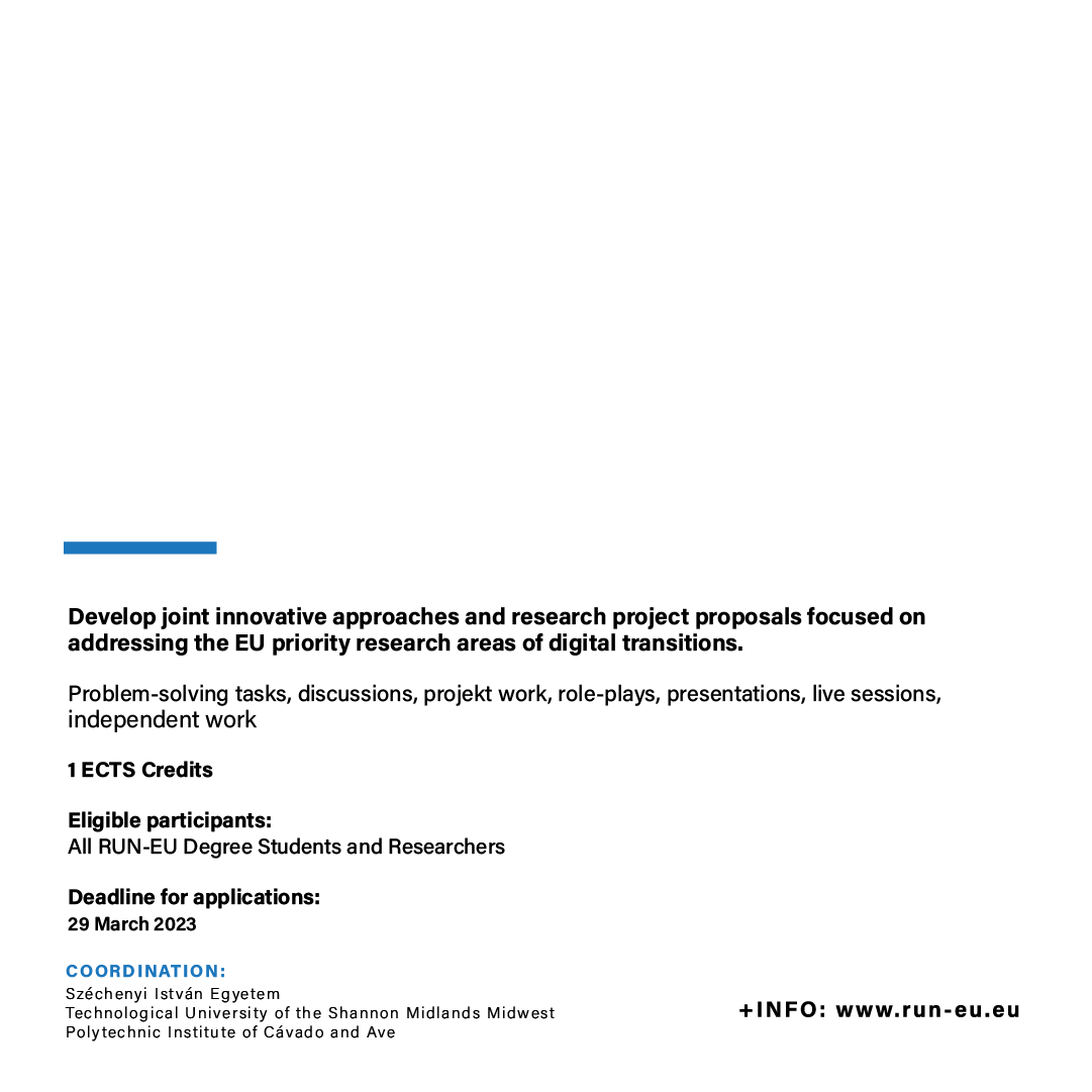 The University of Győr – Széchenyi Istvan University (SZE), is hosting the third RUN-EU Student Week, from 24 to 28 April 2023, in Hungary.