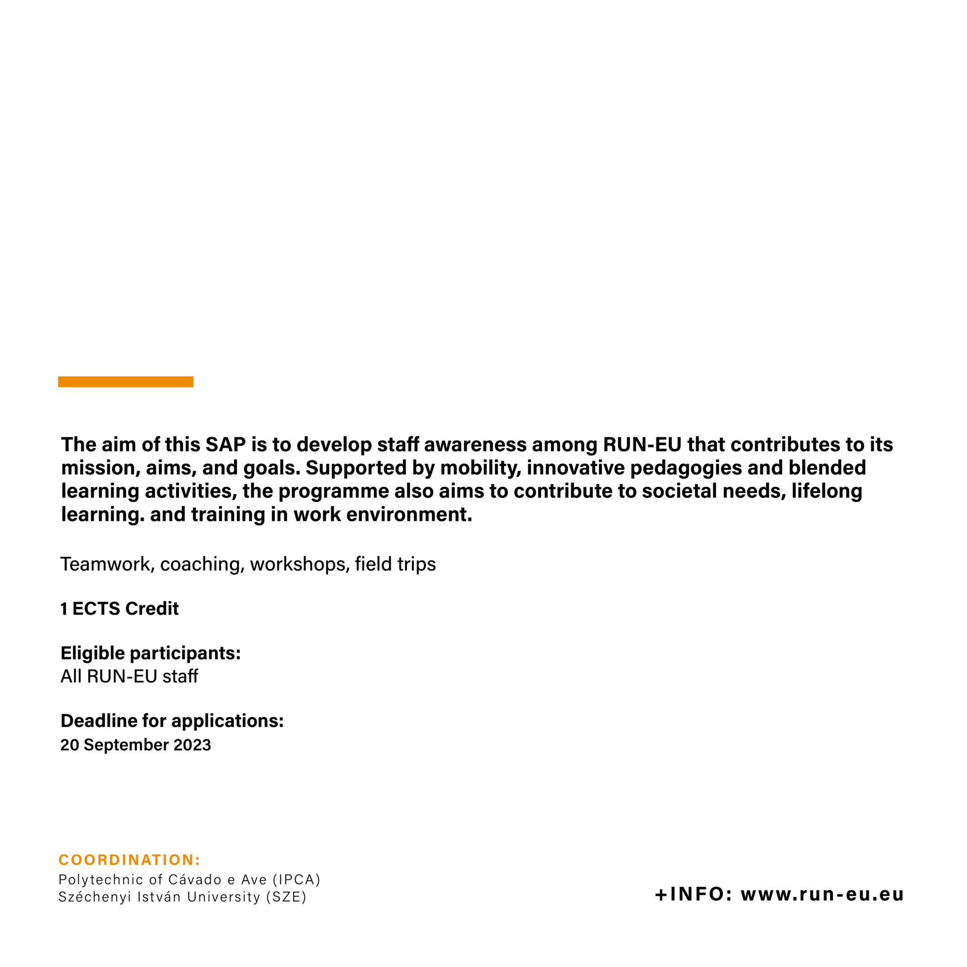 The aim of this SAP is to develop staff awareness among RUN-EU that contributes to its mission, aims, and goals.