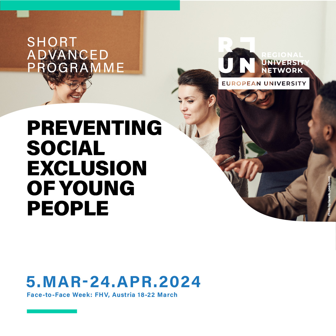 Preventing the Social Exclusion of Young People – 3rd Edition is a RUN-EU Short Advanced Programme (SAP) jointly coordinated by the Häme University of Applied Sciences (HAMK), the NHL Stenden University of Applied Sciences (NHL Stenden), and the Vorarlberg University of Applied Sciences (FHV).