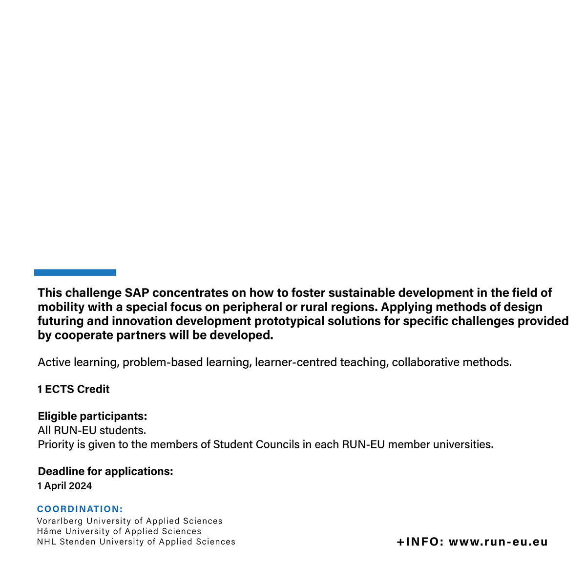 Priority is given to members of the Student Councils of each RUN-EU member university.