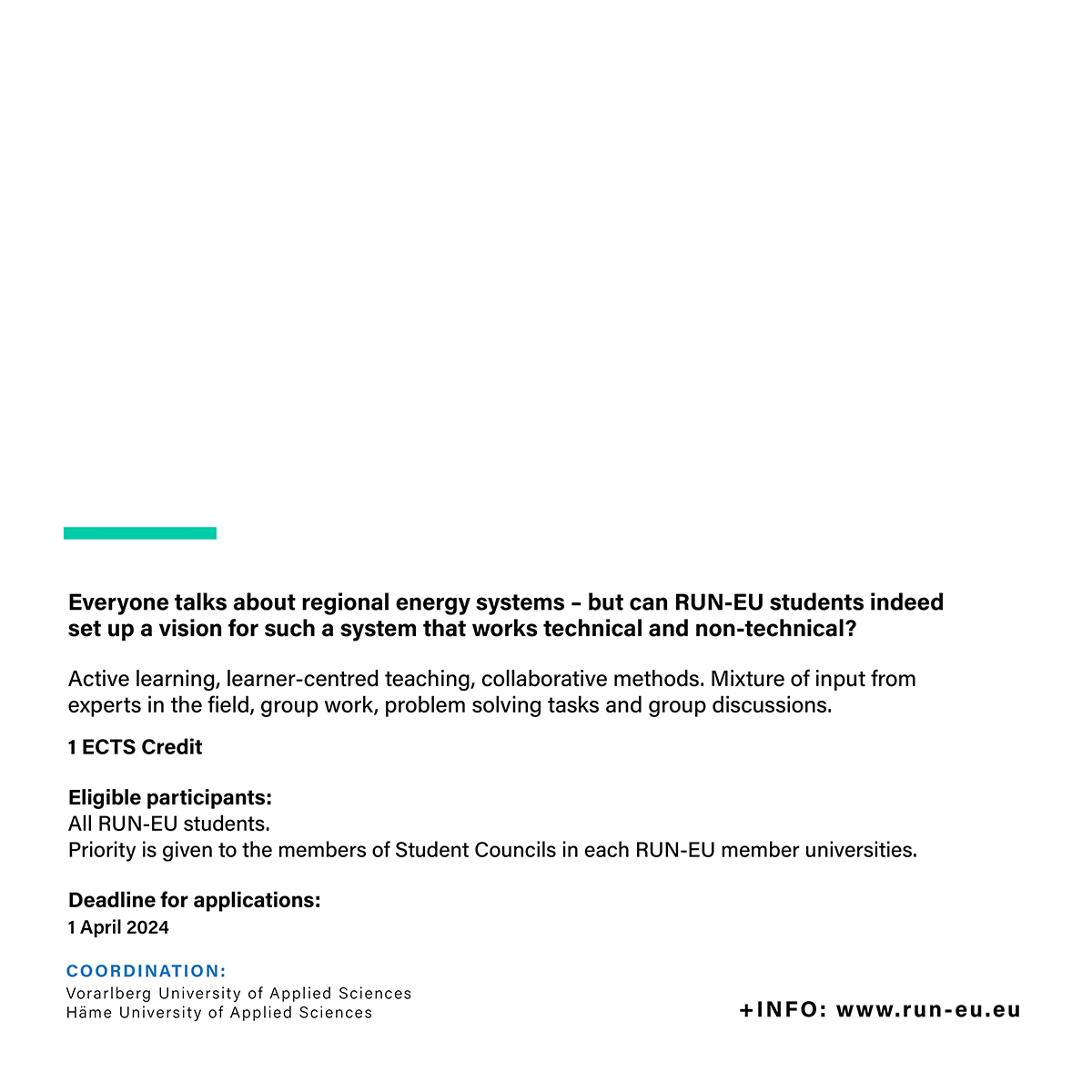 This programme aims to develop a vision for the energy system of Vorarlberg in 2040 and to reflect on its transferability to the regions of the other RUN-EU partners.