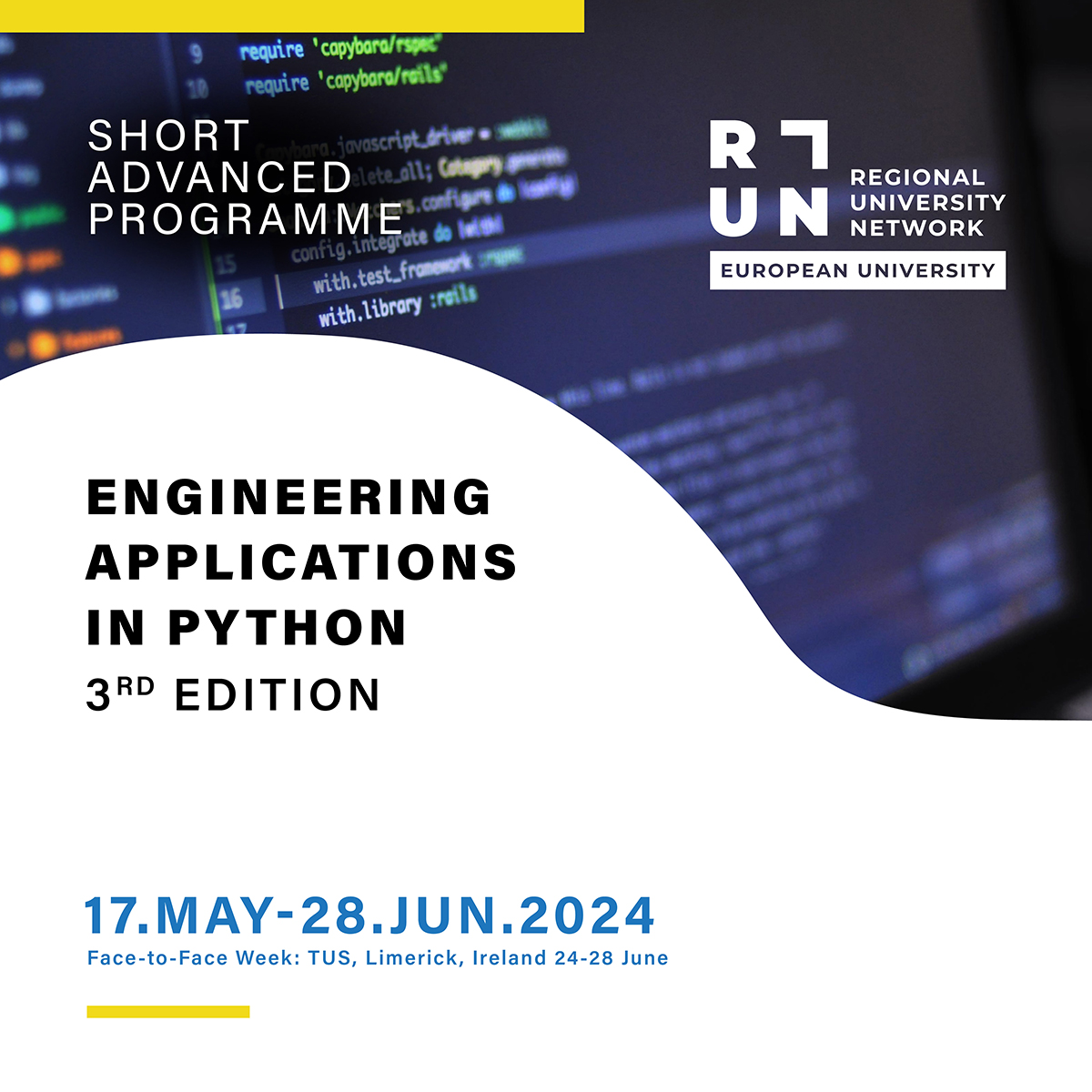 Jointly coordinated by the Polytechnic University of Leiria (IPLeiria) and the Technological University of the Shannon (TUS), the Short Advanced Programme (SAP) ‘Engineering Applications in Python’ – 3rd edition aims to introduce programming to undergraduate and postgraduate students with some knowledge of a programming language and is oriented to engineering applications.