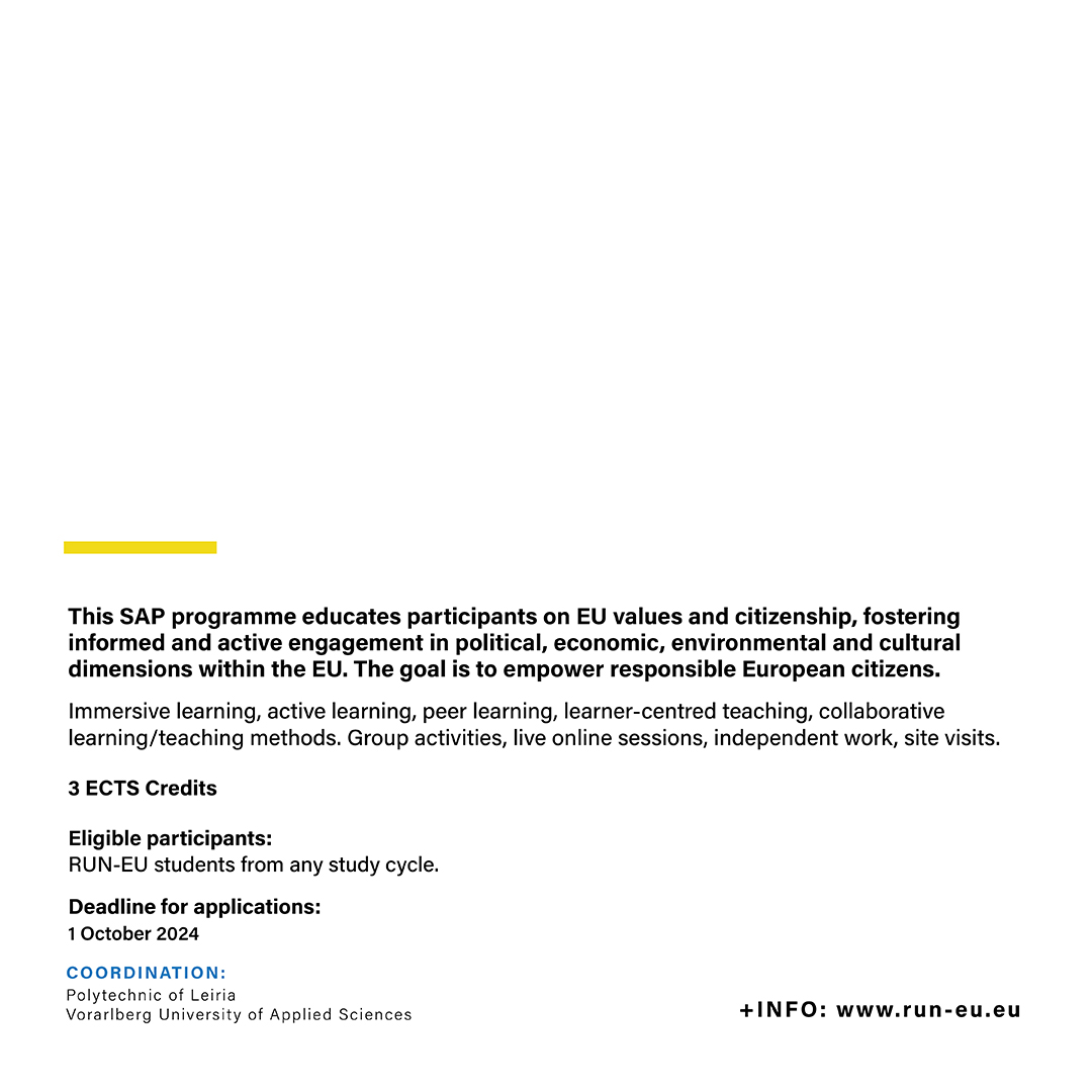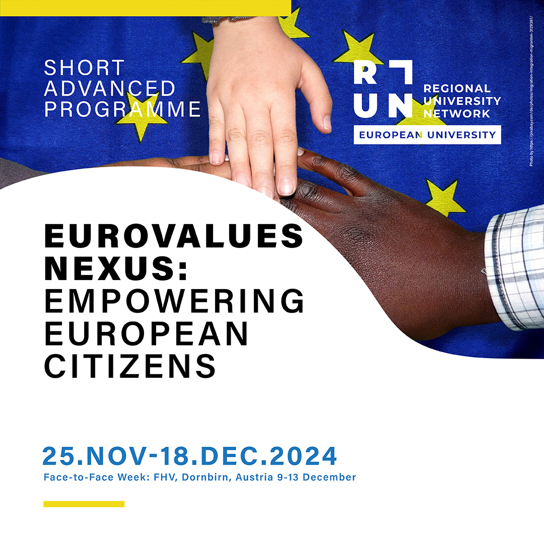 Jointly coordinated by the Vorarlberg University of Applied Sciences (FHV), and the Polytechnic University of Leiria (IPLeiria), the Short Advanced Programme (SAP) ‘Eurovalues Nexus: Empowering European Citizens’