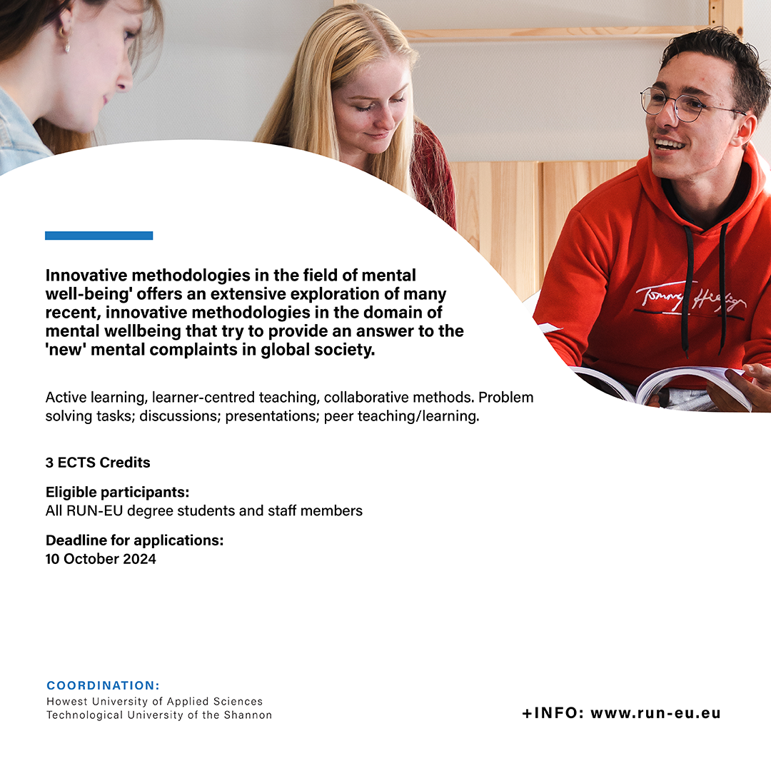 The Short Advanced Programme (SAP) ‘Innovative Methods in Mental Wellbeing’ is jointly coordinated by the Howest University of Applied Sciences, and the Technological University of the Shannon (TUS).