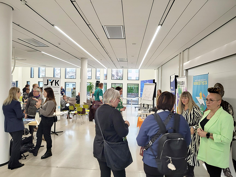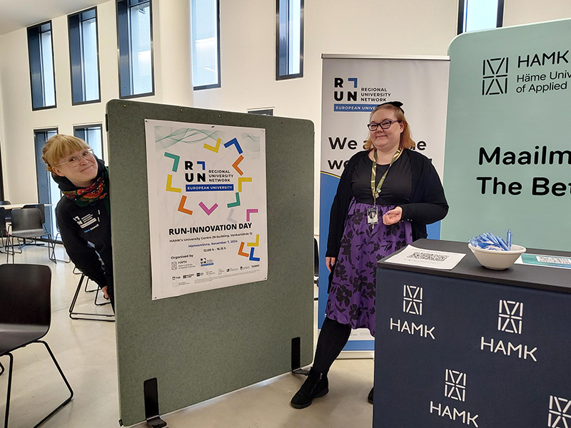 RDI and internationalisation opportunities were showcased at the event’s stands. Our student Susanna Kuisma and HAMK’s RUN-EU project assistant, Milla Räty, presented the possibilities of RUN-EU.