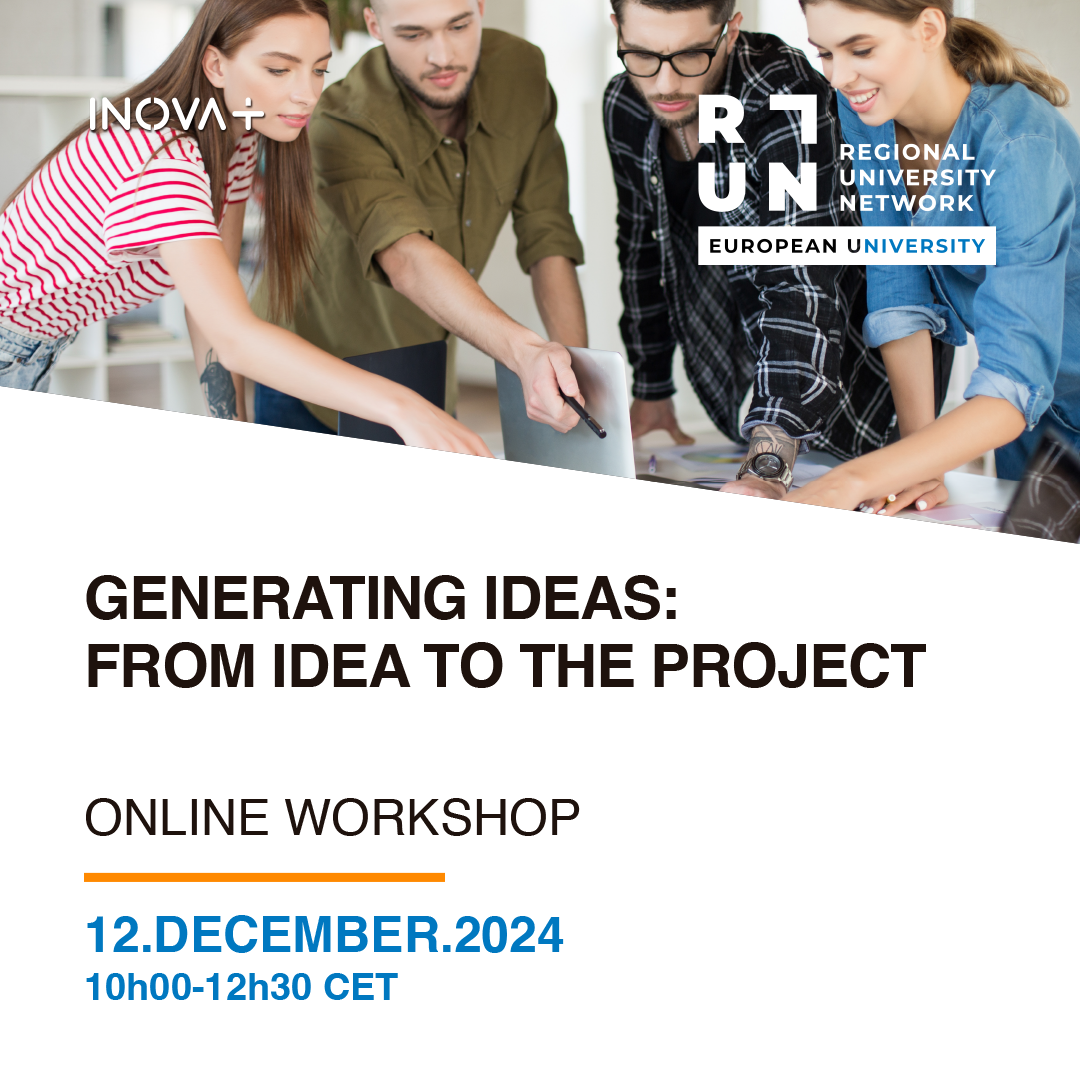 RUN-EU is co-organising with INOVA+ a series of online training workshops called ‘Capacity Workshops for Researchers, Teachers and Other Staff’—addressing staff from all members of the alliance, targeting Researchers, Teachers, Administrative and Technical staff from the internationalisation or project offices, or other staff appointed by the local managers.