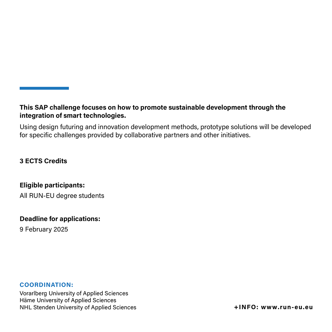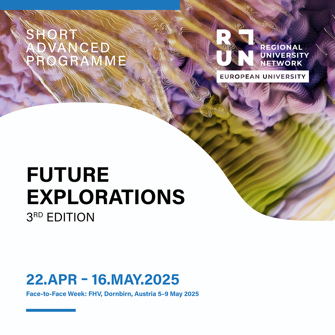 The Short Advanced Programme (SAP) ‘Future Explorations – 3rd edition’ is jointly coordinated by the Vorarlberg University of Applied Sciences (FHV), the Häme University of Applied Sciences (HAMK), and the NHL Stenden University of Applied Sciences (NHL Stenden).