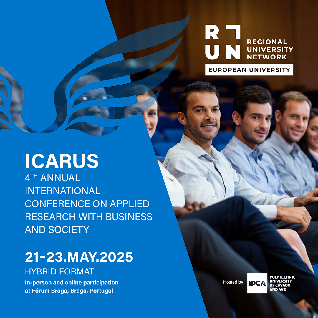 Hosted by the Polytechnic University of Cávado and Ave, the 4th Edition of RUN-EU ICARUS – Annual International Conference on Applied Research with Business and Society (ICARUS), together with the second edition of RUN-EU Innovation Meet Regions, will take place from 21 to 23 May 2025 in Braga, Portugal, at the Fórum Braga.